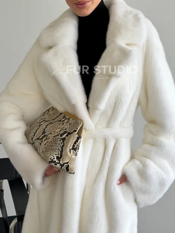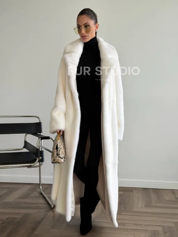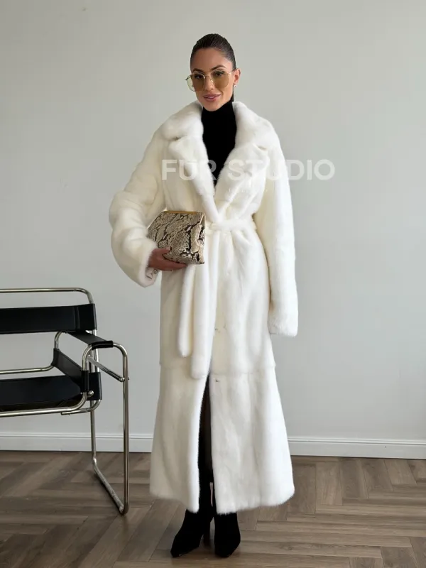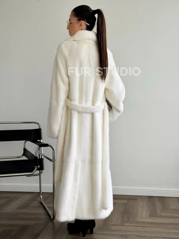 Белая норковая шуба в пол 102624