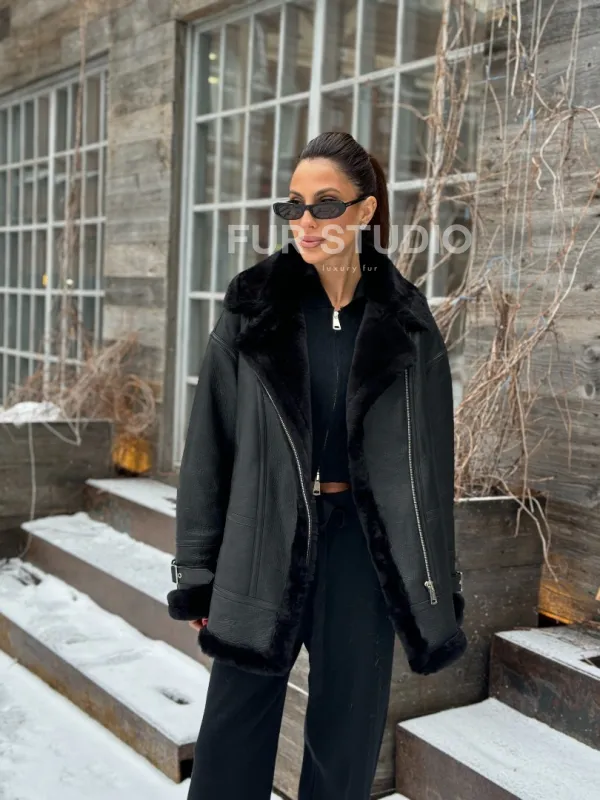 Черная дубленка авитор на овчине. Модель предлагается в размерах от 42 до 52. Оптимальная длина моделей 70-75 см подчеркивает линии вашей фигуры. Эта дубленка станет неотъемлемой частью гардероба для тех, кто предпочитает роскошь и утонченность натуральной кожи.