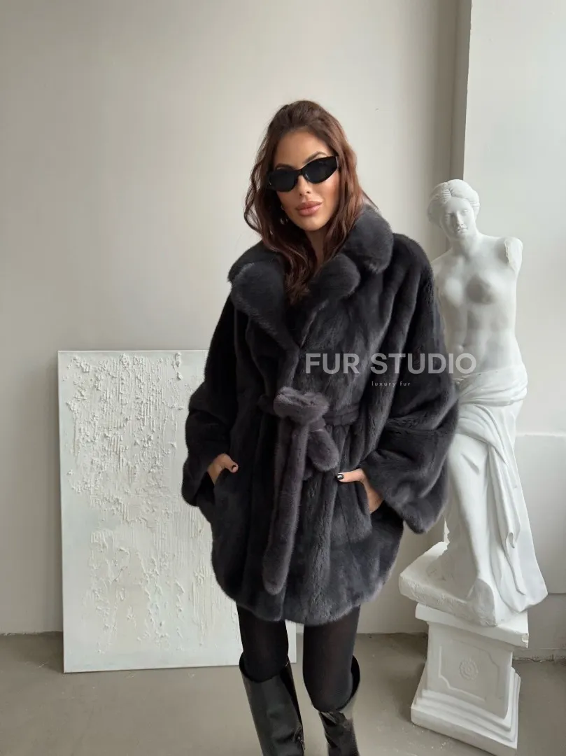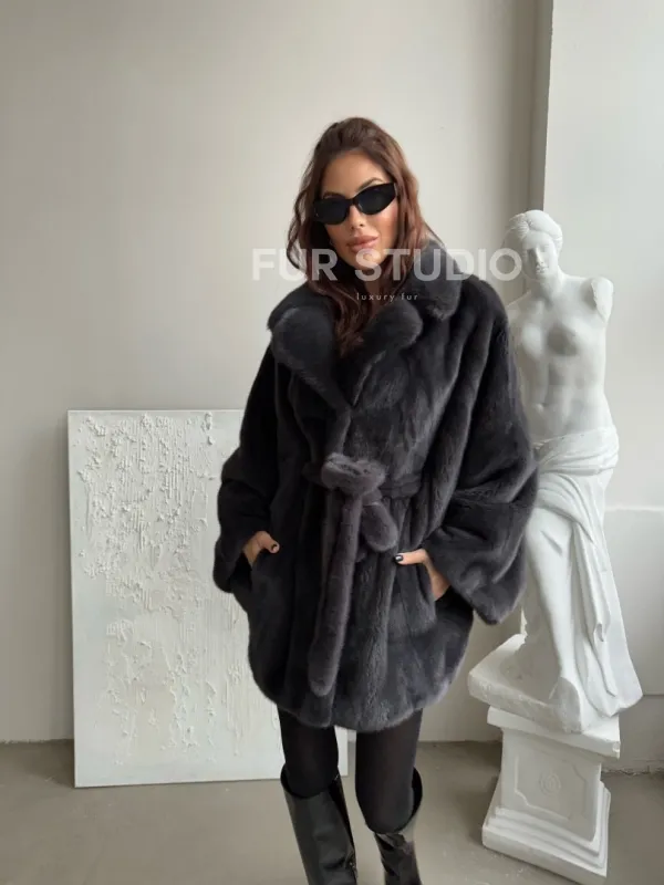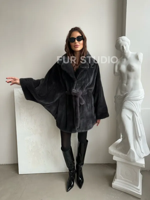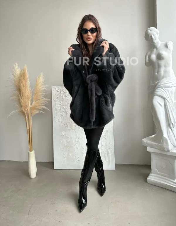 Шуба - манто из меха норки Nafa в цвете графит 100424