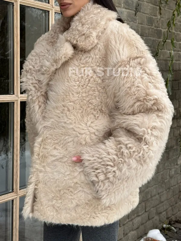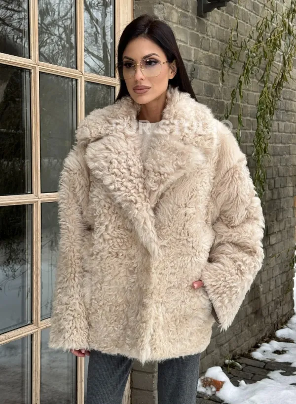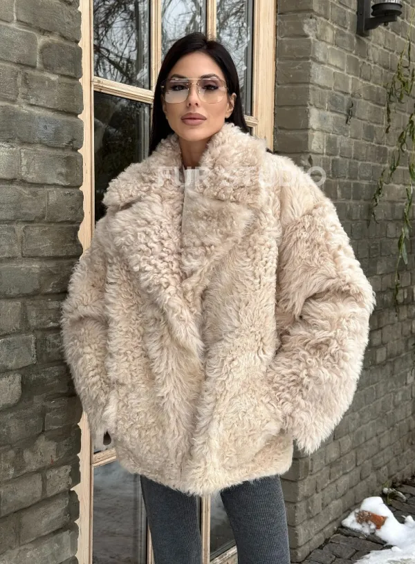 Светлая короткая шуба из испанской овчины 101438