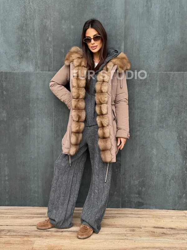 Женский пуховик с мехом куницы 102412